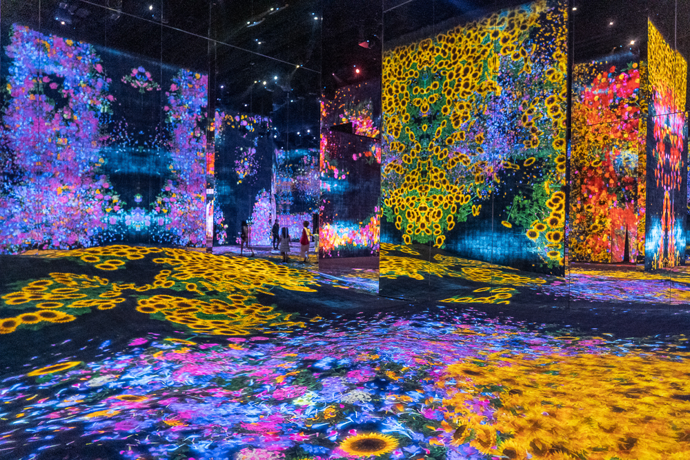 澳门teamLab集合多个人气作品,包括随着时间变化的「花与人的洼谷:迷失、沉浸与重生」、「无穷无尽的水晶宇宙」、「与花共生的动物们II」和「翻转世界之涂鸦自然,红色名录」等等,作品群构成广阔的空间,让参与者探索人与自然及对于世界新的认知。