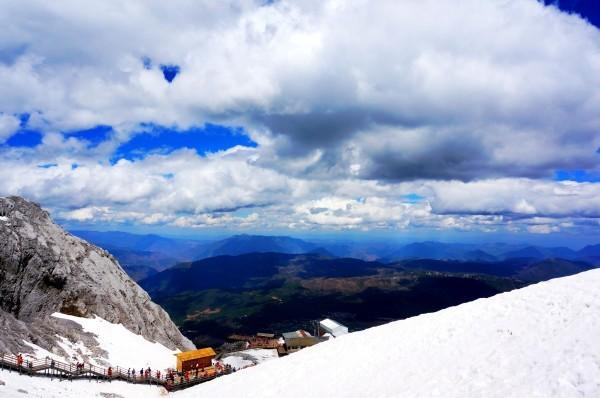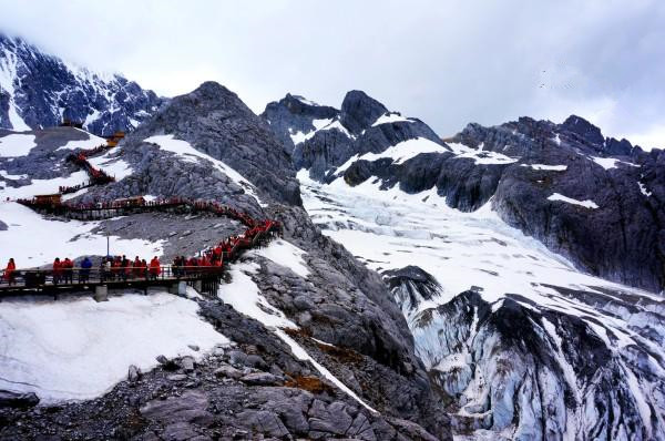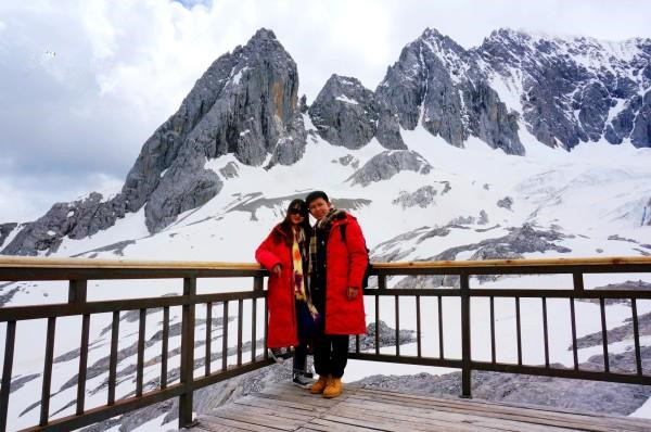 玉龙雪山 人多得想拍张照都要排队了 很快,我们就登到海拔4680km的终点。 这一路我们走得不算辛苦,也没有出现高反,除了虫先森那笨重的书包令我们走得有点吃力,走走停停,休息的时候就吸几口氧气,也没什么压力。听说肺活量大的人登雪山高反才会严重点,看来我们的确是少运动的