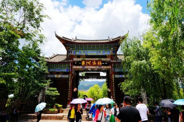 束河古镇,丽江-昆明 最后一天在丽江了,晚上要坐火车回昆明。今天睡到自然醒,吃过早餐,优哉游哉向束河古镇出发~ 在大水车古城门口坐11路车,到束河路下车。车上穿着休闲戴墨镜草帽的基本都是去束河的,到时随大流下车就好了 。原来下车的车站离束河古镇还要走一段路程,我们顶着烈日就走了大半个钟才到,真的好远 !