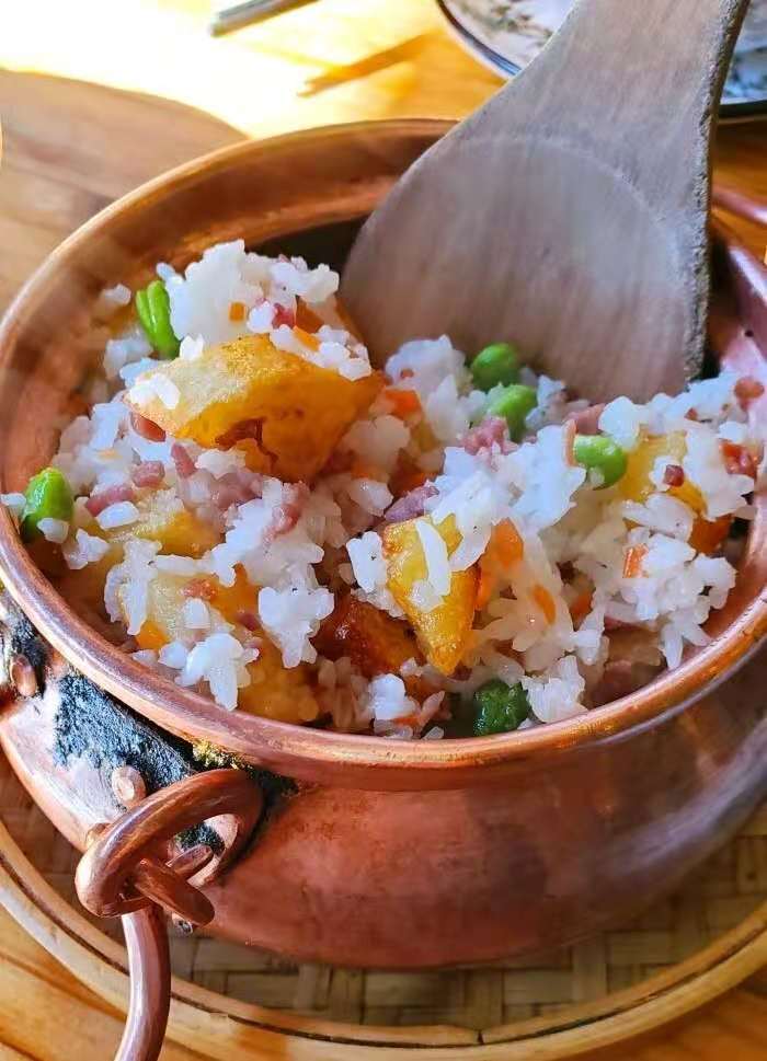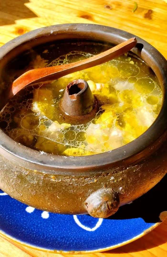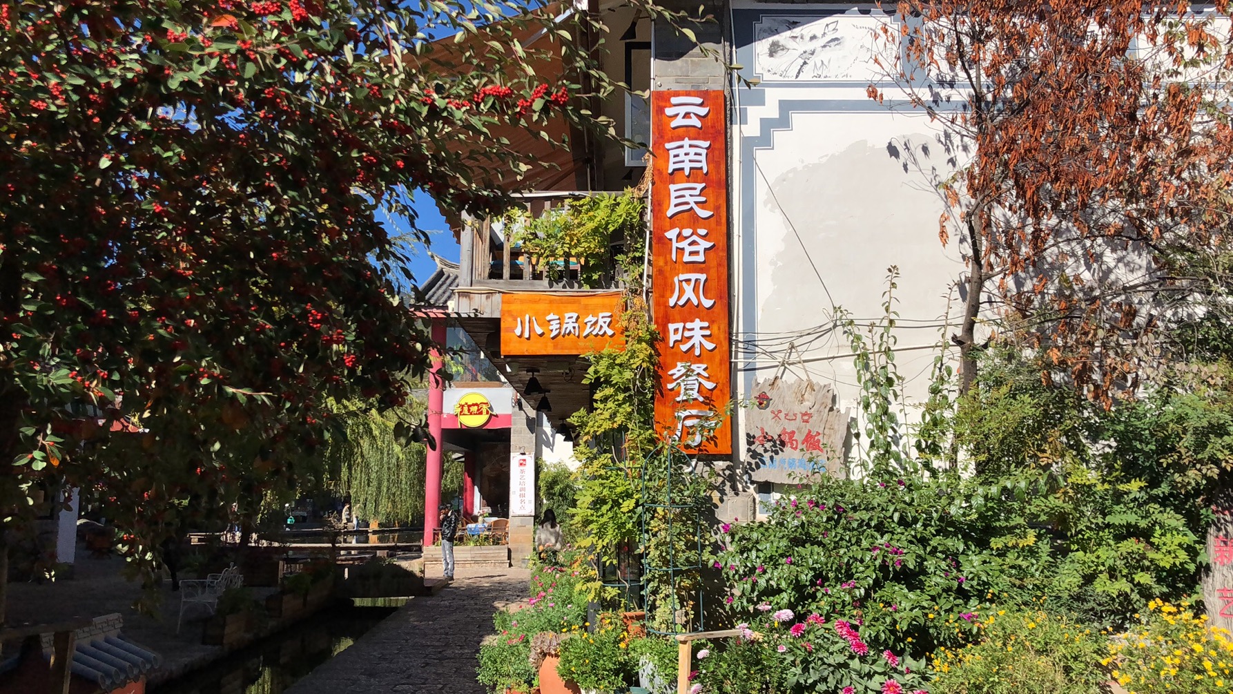 离开丽江之前,还在束河古镇吃了一餐美食 ,很不错的 [薄荷]环境:环境还是不错的,古镇内小河边上,门口花草开发,店内有驻唱歌手。 [服务铃]服务:小哥很热情,还帮烫好餐具。 水性杨花:口感滑滑的和莼菜有点类似,很好,口感很赞。 汽锅鸡:是原汤,鸡品质就像土鸡一样,喝汤很舒服。 小锅饭:店里面特色,口感还很不错。