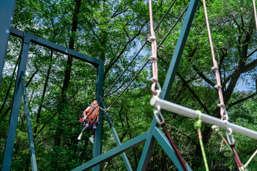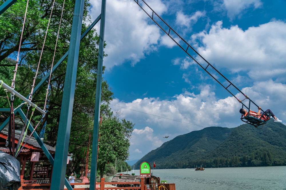 如今当你徜徉在七里扬帆景区,除了秀丽的美景之外,登上子胥野渡,还能体验非常网红的江上秋千。江上秋千立于江岸,与其他景区的悬崖秋千相比是另一番别样感受,当秋千被不断拉高,肾上激素飙升,见识速度与激情的同时,青山绿水也近在眼前。