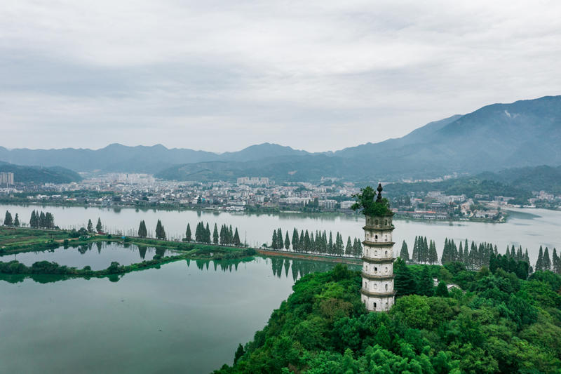 闻名浙江的南北峰塔,被称为“状元塔”,与梅城古镇隔江相望。这背后有个动人的传说,相传蓬莱西王母赏唐伯虎在新安江畔所作的“双塔凌云”画卷,提笔在画上题“夫妻塔”,并唤使自已的侍从女使化为青鸟衔桂圆籽吐在塔顶,后成长为现在的桂圆树,寓意赐“贵气”于双塔。