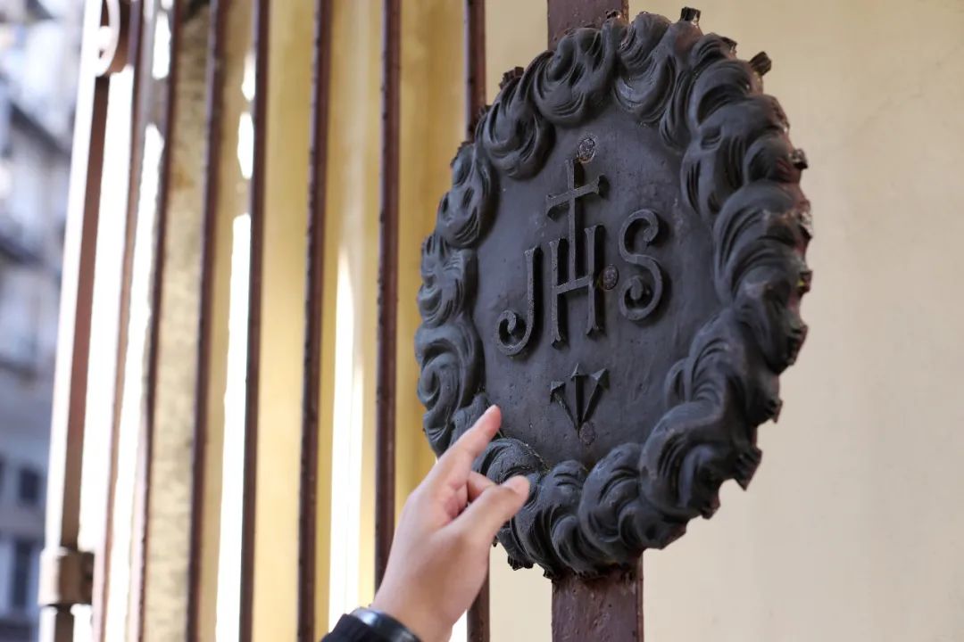 厚重的铁艺大门上,还有耶稣会的明显标志。 这是一座带有內外花园的修道院,四周有围墙与外界隔离,因为藏在巷子里,很少有游客来打卡,相当安静。 但修院不对外开放,只有圣堂对外免费开放。
