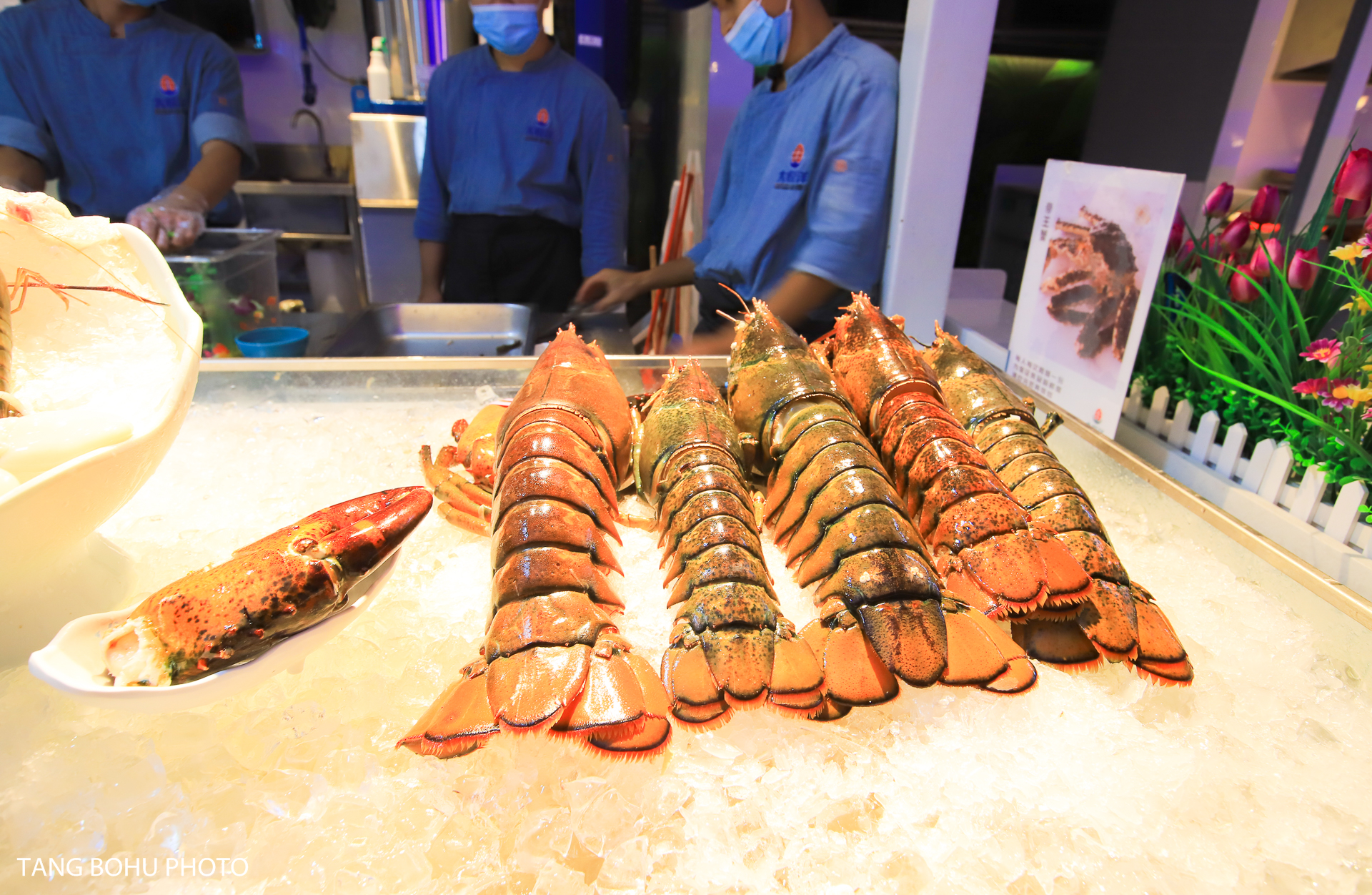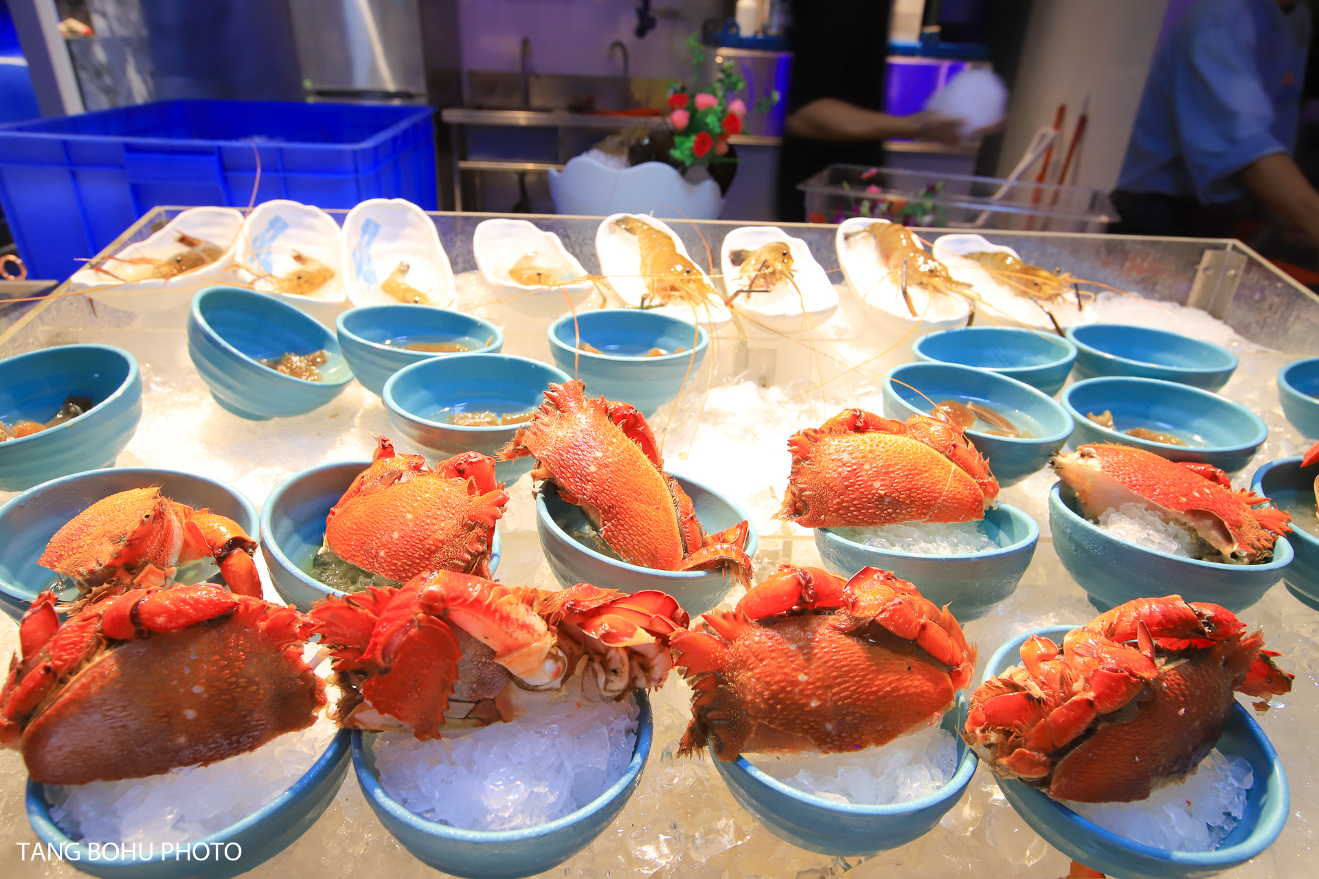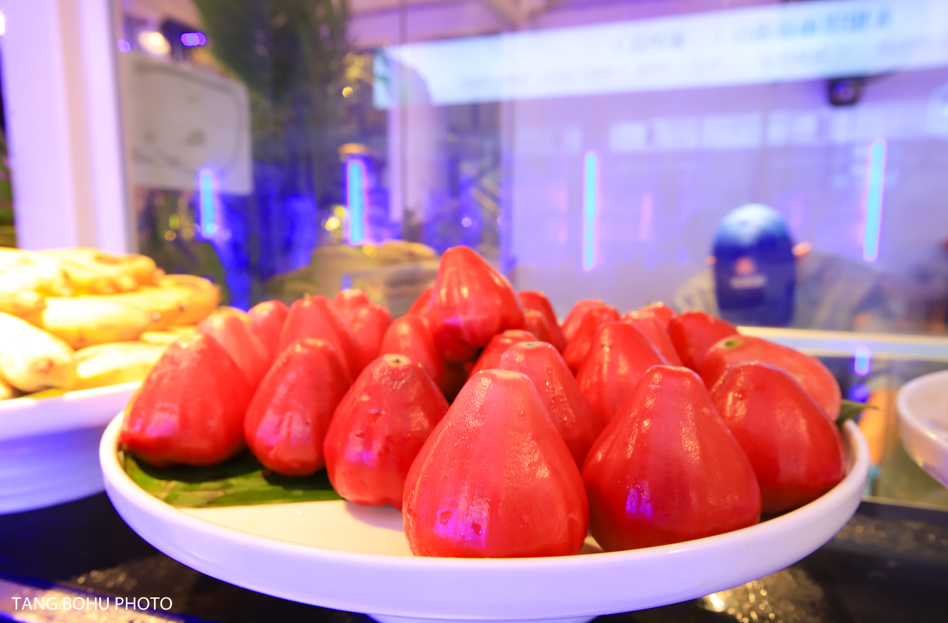 这里十分适合拍照,餐厅以蓝白色为主色调,蓝白相间的颜色让人感到清爽干净,自助餐是在户外用餐,周边椰子树围绕着整个餐厅。晚上灯亮起的时候很美,紫色的灯光不失浪漫。入口旁还有透明空调屋,有喷泉流水池,还有可以俯瞰所有美食的二楼树屋,伴着潺潺流水用餐惬意又浪漫。