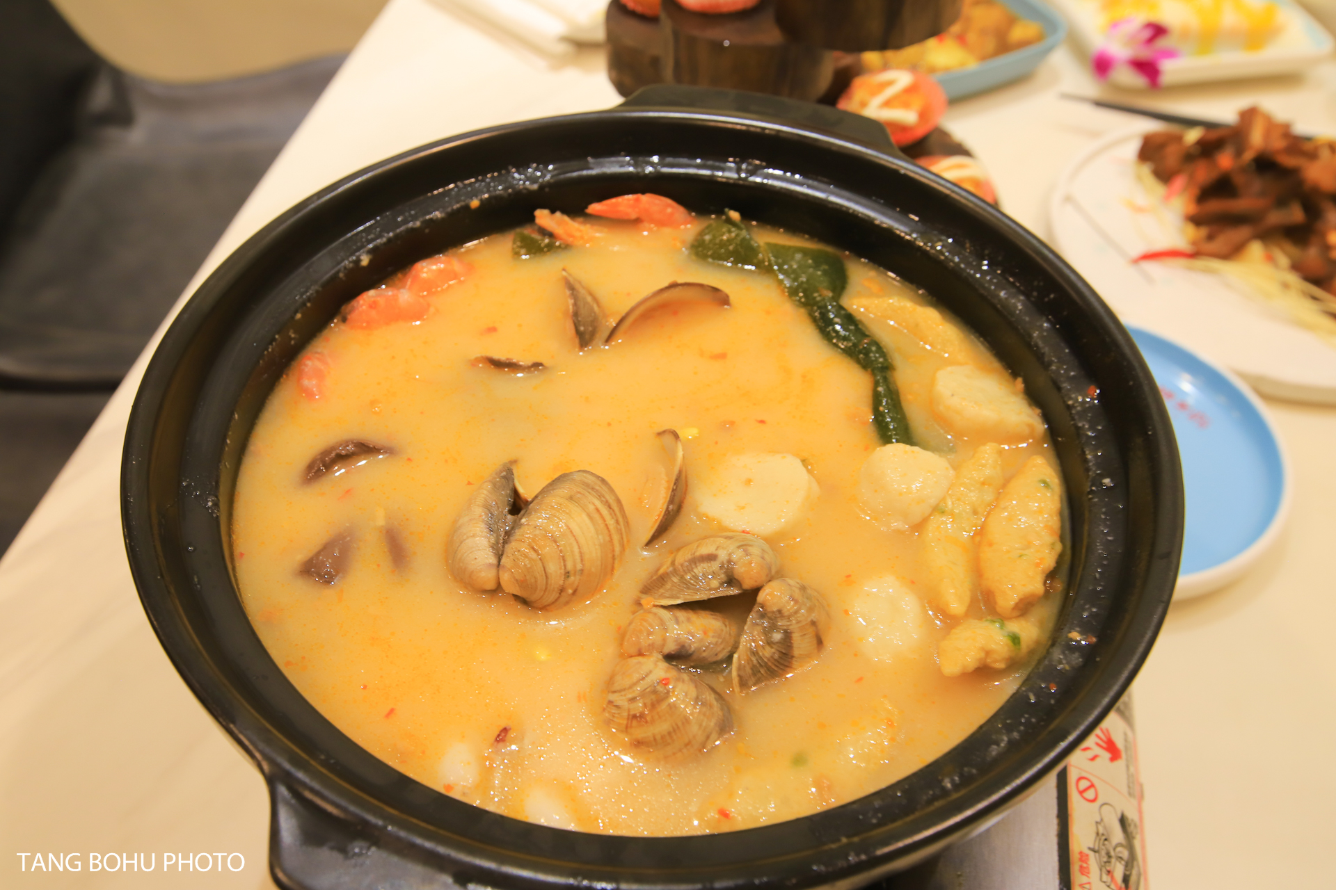 不能错过的 海南 海鲜糟粕醋堡,汤有点像 泰国 的冬阴功汤一样的味道,酸辣味,汤底金黄色,里面放有虾,花甲,海带,墨鱼仔,鸭血等等。份量很足,酸辣可口。