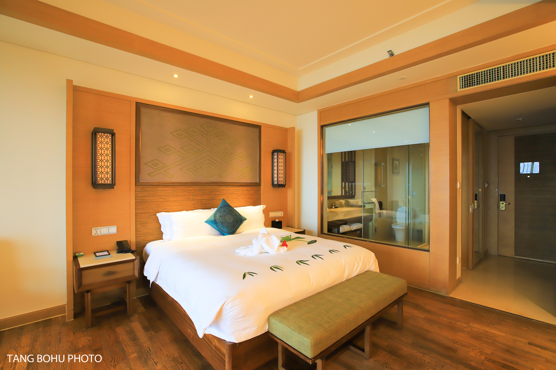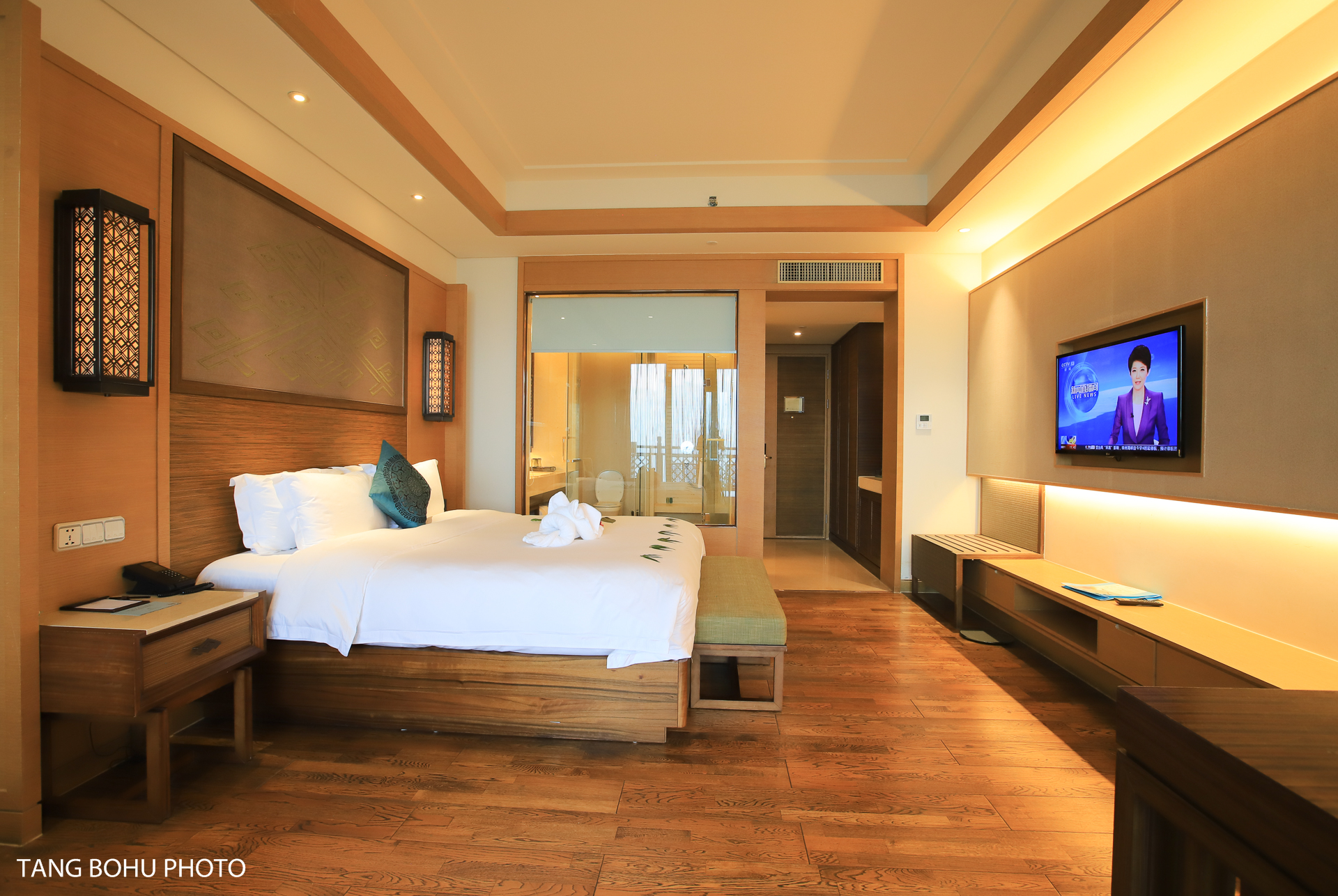 三亚充满黎族文化艺术的酒店 来 三亚 寻一处宁静的住处很重要,入住位于 三亚 湾的海控•君澜 三亚 湾迎宾馆,入住当天享受到了酒店最高礼节的接待,当地的黎族姑娘们穿着当地特色的服饰载歌载舞的迎接着我的到来,还和她们一起跳起了舞,让我感受到了这家酒店的温馨亲切。距离机场20分钟车程,穿过酒店园林就到了海边,不管是大堂还是房间无处不在的黎族文化装饰风格随处可见,当我走进房间时被房间的装饰风格深深吸引住。