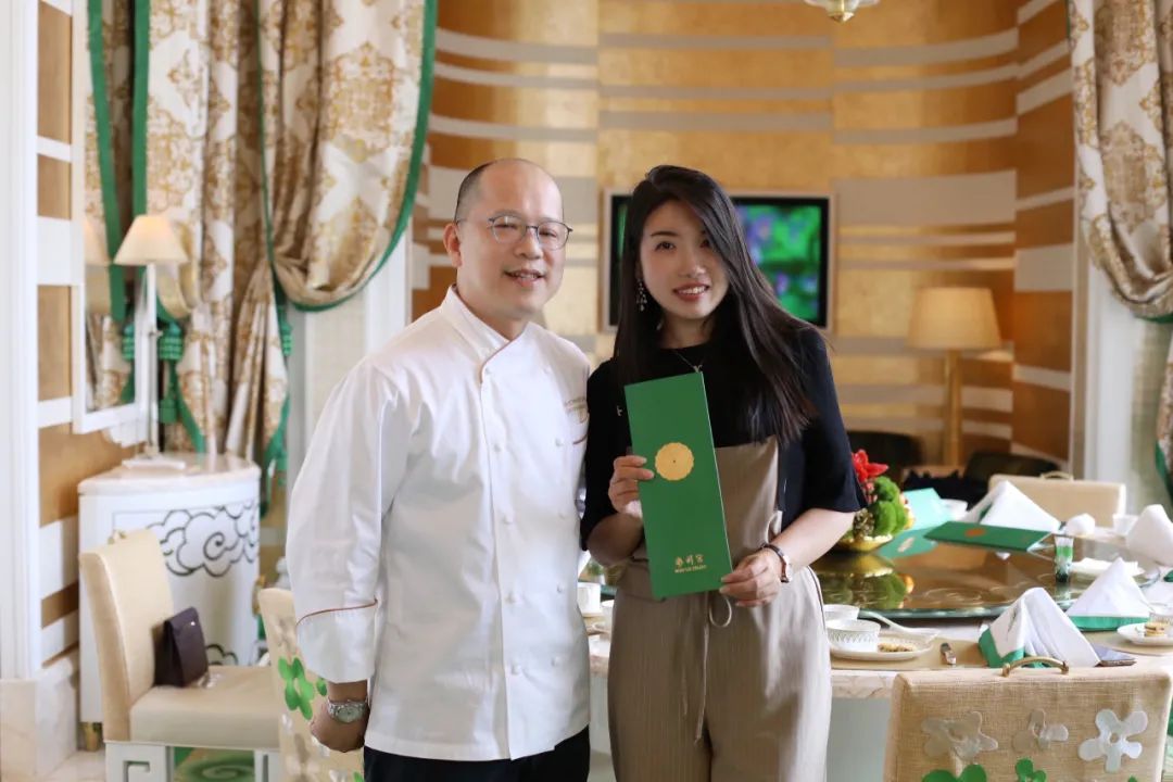 谭总厨分享说:“在我的职业生涯中,我曾款待过许多国家元首、皇室成员及外交官,就 像在皇宫内任职的厨师。 我致力不断接受挑战及提升自己,时刻保持创新,因为餐饮其实跟时尚无异,我们必须掌握最新趋势,才可创作出最佳的粤式美馔。 现今的客人追求由纯净有机食材烹调的高品质菜肴,所以我花大量时间搜罗顶级食材,务求为宾客创作最合心意的菜单。” 很荣幸的和谭总厨拍了张合影,满意而归。