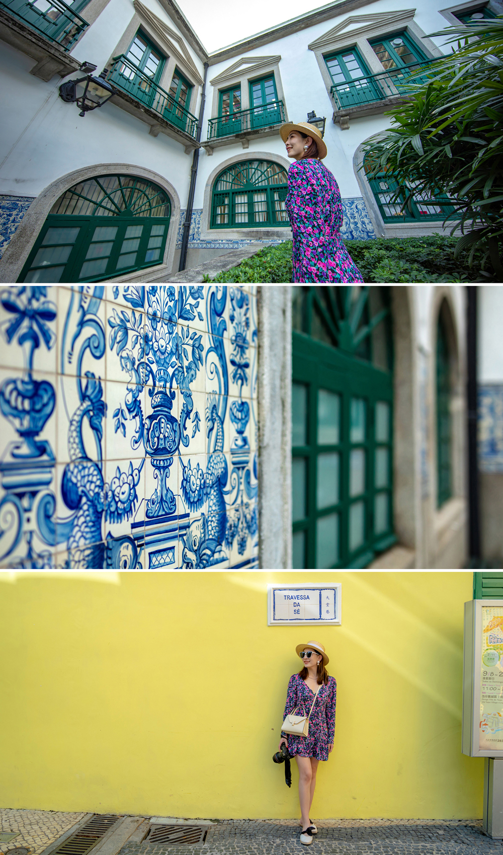 走进市政署的大楼,这里其实是一处私藏的绝佳外景拍摄地,据说是远渡重洋而来的葡国瓷砖,精致的青花纹样却满满的异域风情,和绿色蓝色的窗框搭配,怎么拍都好看。