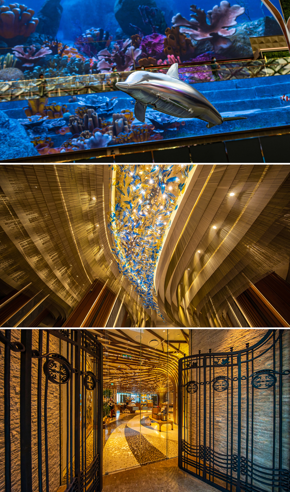 72小时澳门.一座城的世界之旅 2020-12-15 10:03:42 火车吧 澳门第二间酒店,我选择了同样位于氹仔岛的【美狮美高梅】,像是多个整齐的巨大金砖堆起的庞然大物,就在永利皇宫的对面,可以说是无缝转移。 美狮美高梅酒店有几个必打卡参观拍摄的位置,最有名的就是眼前的美艺大厅,硕大的球形水晶吊灯气势不凡,更有范冰冰等一众明星都来打卡的拍摄角,收藏的数十张精美地毯,整体金灿灿的色调奢华高调。 还是依旧选择套房入住,欢迎水果和巧克力甜蜜贴心,还有红酒,试想傍晚时分,对着巨大的落地窗,看着窗外华灯初上蓝夜渐染,品着红酒聊聊天,就宅在酒店的感觉也是很棒。 美狮美高梅酒店还有一处引以为豪的存在就是一层名店街头顶上方的,无支柱玻璃穹顶,叫做视博天幕,现在每天都准时上演空中海洋秀,由无人机带动的银色海豚和水母,在高高的玻璃穹顶下自游自在,当然是小朋友们最喜欢的项目,海豚还时不时飞到人群中,如果你够机敏,还可以摸到它们。 上一页1 2 3 4 5 6 下一页
