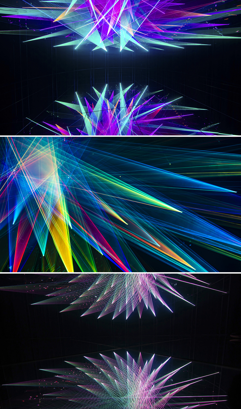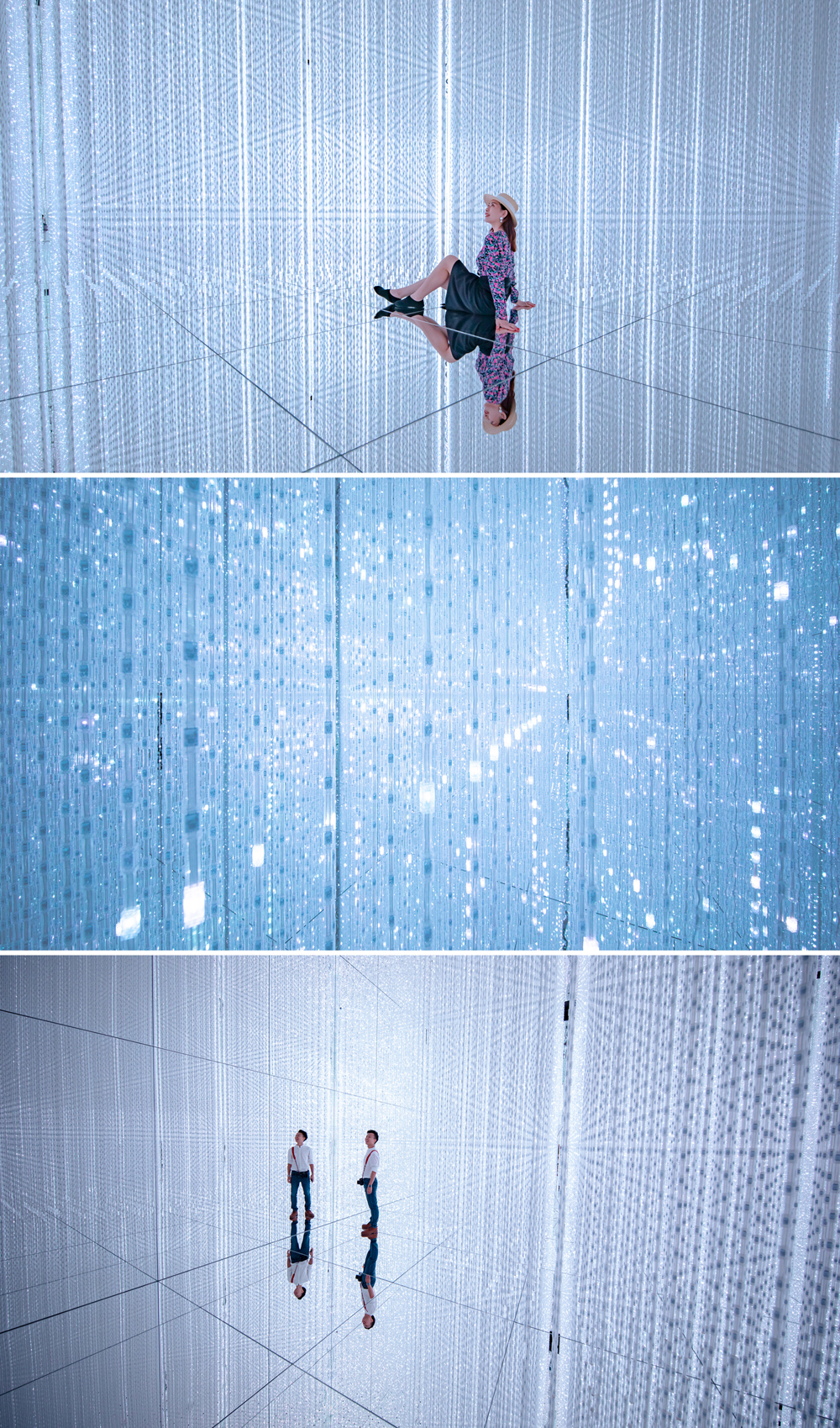 接下来是我们这次体验最向往的一块区域,「无穷无尽的水晶宇宙」累积光点所创造的立体作品,无限扩张的光之雕塑好像时空穿梭的现场感,瞬间感觉自己好像拥有了整个宇宙般,星辰时间,组成阵列,而我们就是宇宙的中心。好玩之处在于我们可以通过手机自己选择元素展现,空间时间光影之间相互影响,永远在无穷尽的变化之中。