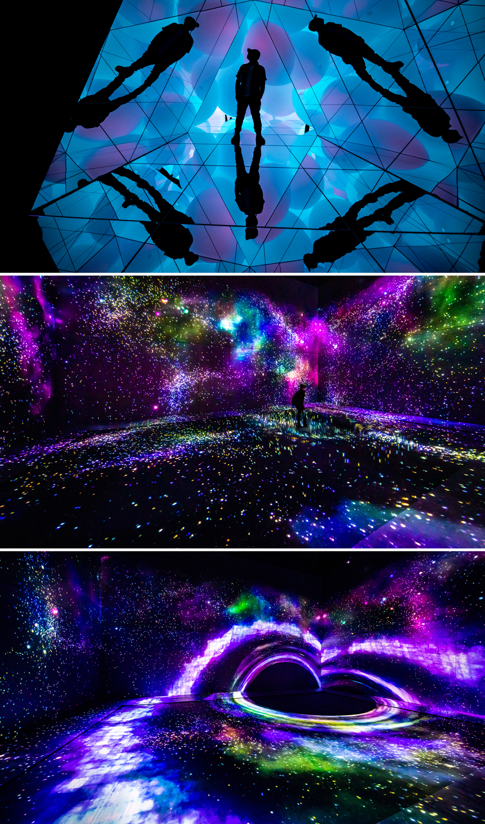 「光之雕刻 - 平面」镭射光束在地面的镜像中,重新构筑空间,形成了立体雕塑,而我们就是其中唯一不确定的因素,穿插打破光束的构成感,互动,融合,幻彩耀眼声场激昂,如此迷人的光空间。