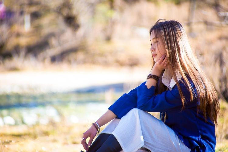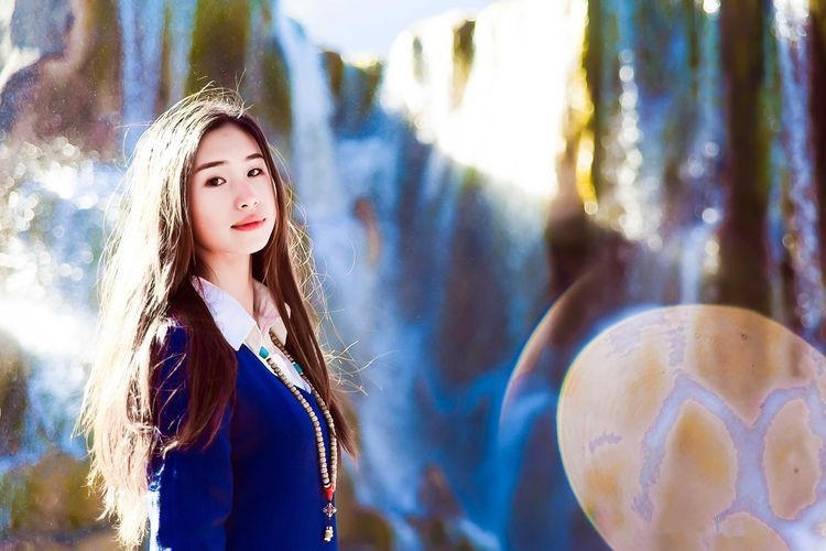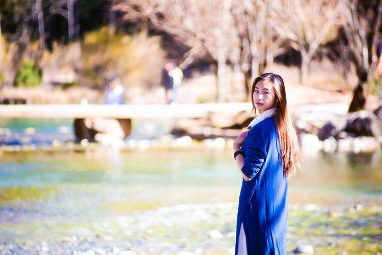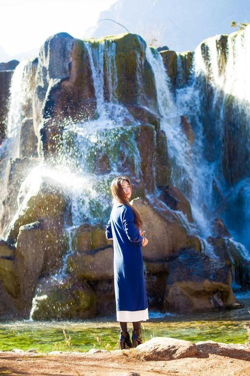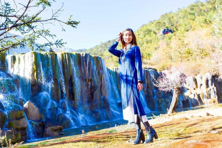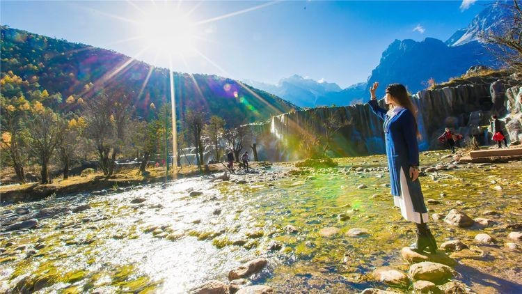 在蓝月谷就能感觉到秋天的意思了。毕竟这里所有的植物可都不是常青的。这湖边走下去就会看到一个瀑布,虽然只有五六米高,但是还是很震撼的 。毕竟这是大自然的杰作。