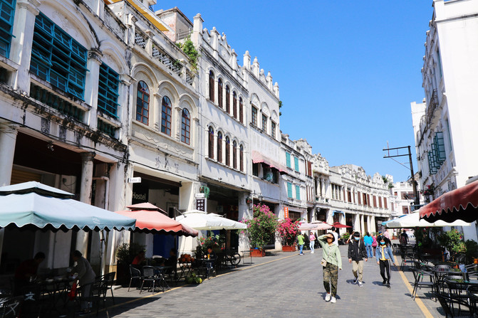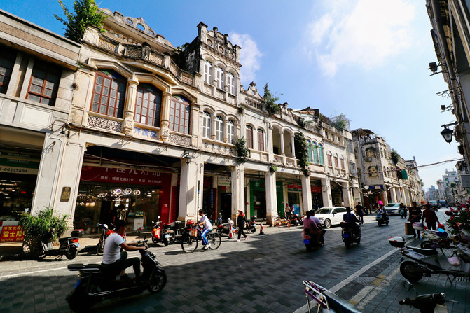 海口绵长的海滩边是一望无际的琼州海峡,常有帆船出没。古老的火山群布满珊瑚般的熔岩流,将古老的时光凝固在这里,寂静而又舒适。湿湿的海风略凉,花香却清晰,偶尔还会有小鸟的歌声。找个生意兴旺的老爸茶店坐下,和热情的阿婆歇息搭讪。街边三三两两的小贩挑担叫卖,担子里几乎都是海南本地的特色水果,山竹、鸡蛋果、莲雾。最好是黄昏,一个人漫步骑楼老街,从解放西路到博爱路,从得胜沙到中山路。摩托车灯亮了,老建筑上的皱纹模糊了,攀着三角梅的阳台和窗子被灯光照出暖意。三轮车在拐角处发出叮叮咚咚的铃声,斑斓的小店亮出诱惑的光影,CD店的劣质音响轮番播放哀怨的80年代情歌。这就是安静舒适,复古怀旧的海口,让人魂牵梦绕的椰城。