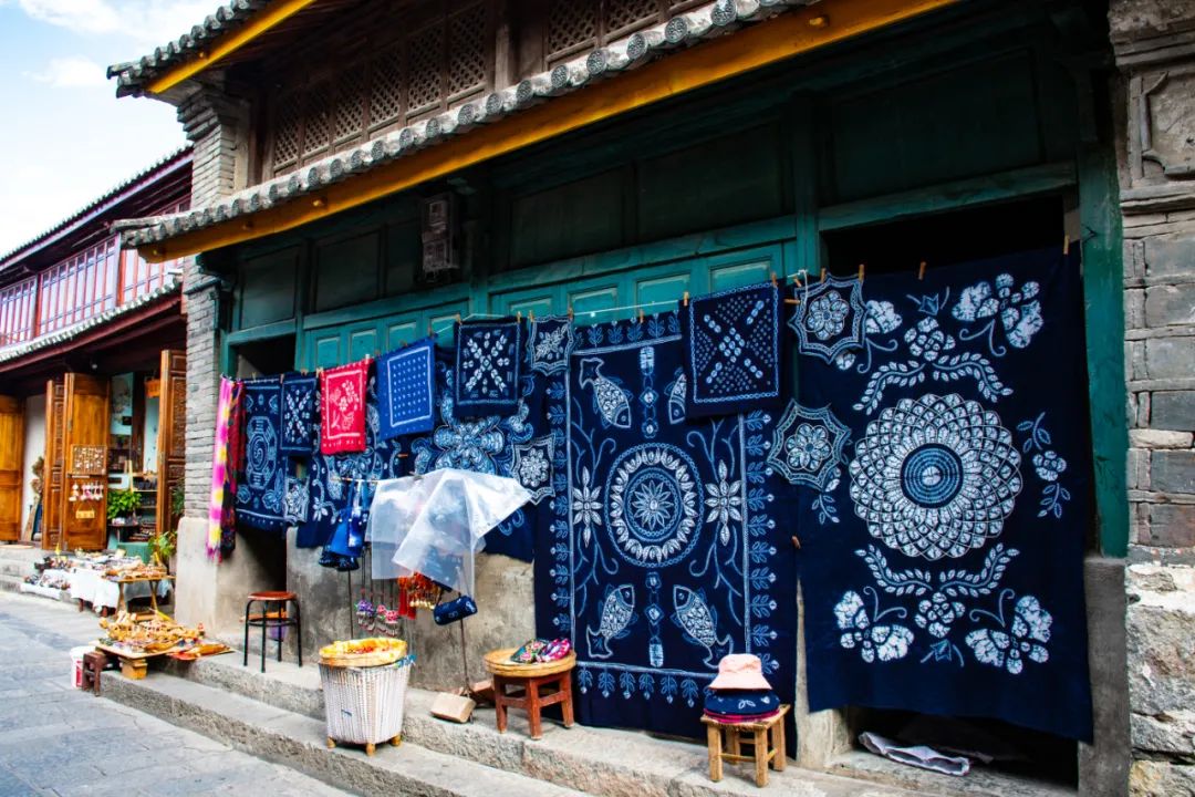 古镇内小巷四通八达,有的巷子不宽,只够人步行通过,而小巷中有很多飘扬的扎染布和悠闲生活的小镇人。 小镇的房子一间挨着一间,而小镇外围则是大片可以耕种的农田,冬天的农田已经完成耕种,进入轮休期,等待来年春种时刻。