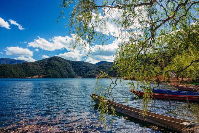 倘若走婚桥上有人扣了你的手,那你一定要记得反扣回去才行!”那天说着这样的笑话,又是插科打诨。 摩梭族的风俗,据说还保留着,这走婚桥,不知见证过了多少爱情。我想象那些羞涩的阿注阿夏,也是望着这样的青山、蓝天、和草海,由绿变黄,又由黄变绿,一眼转瞬,一岁枯荣。那样的年月里不知有多少故事,我们不曾了解,也不必挂念。