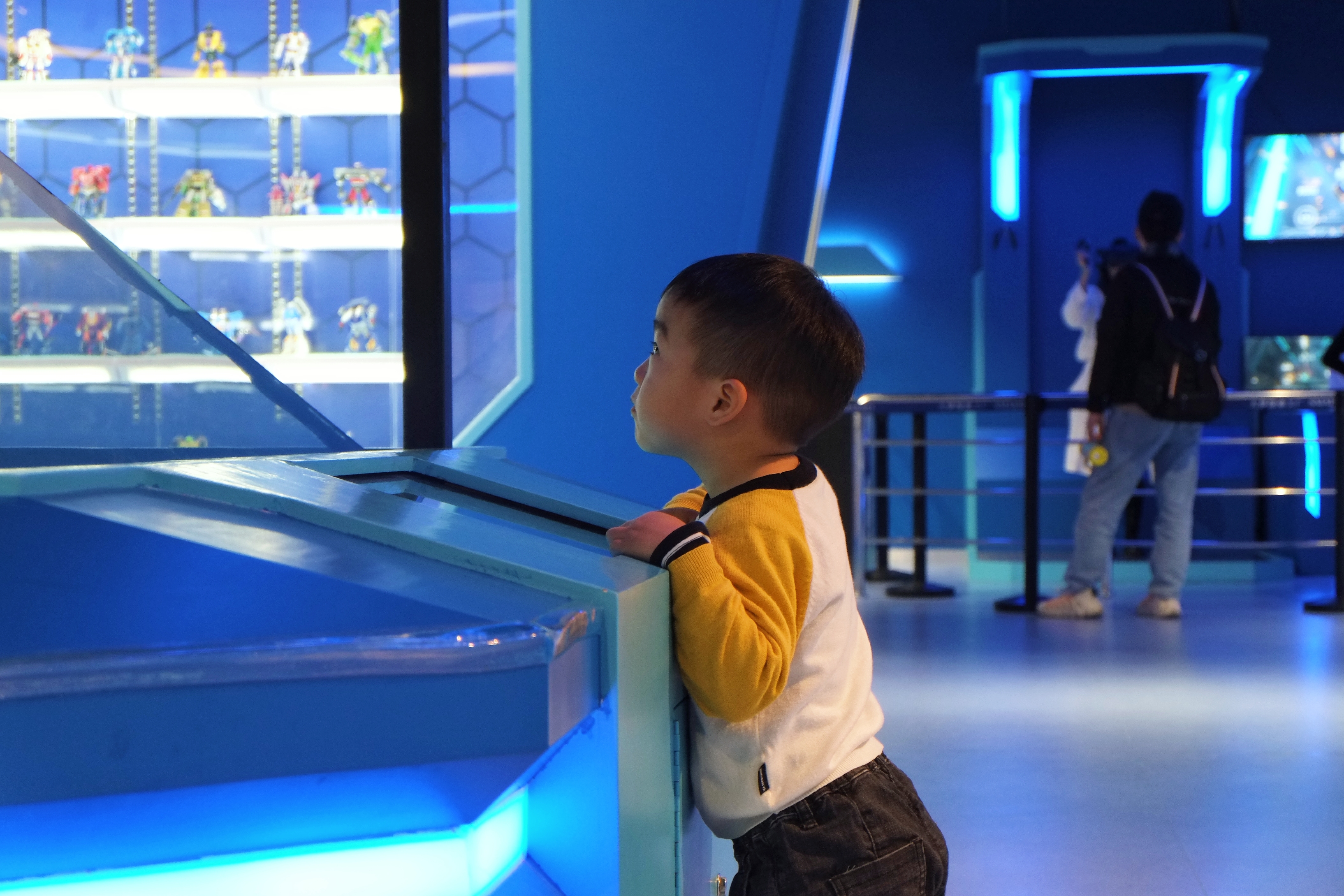 馆内采用全息投影技术,展示机甲经典动作及武器。抓拍下一个小男孩聚精会神的表情,也许这次的机甲探险会在他心中埋下一粒梦想的种子,陪伴他成长。