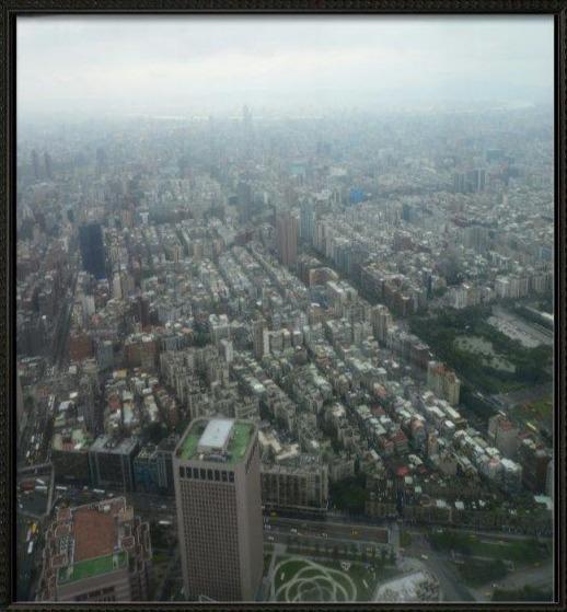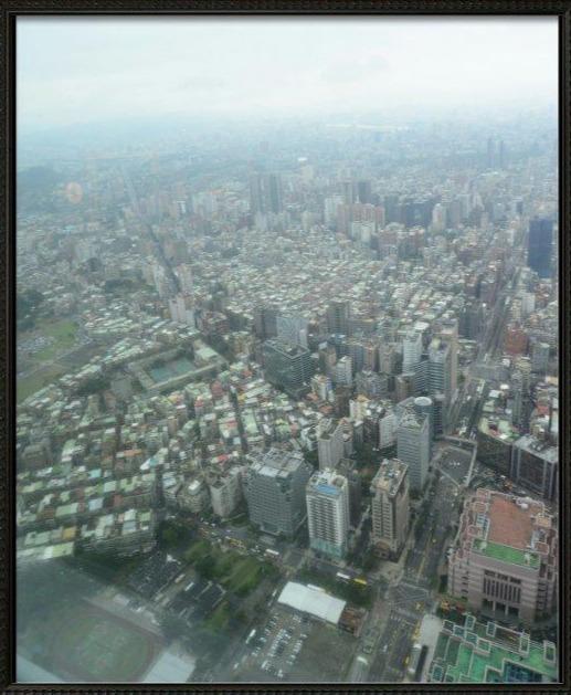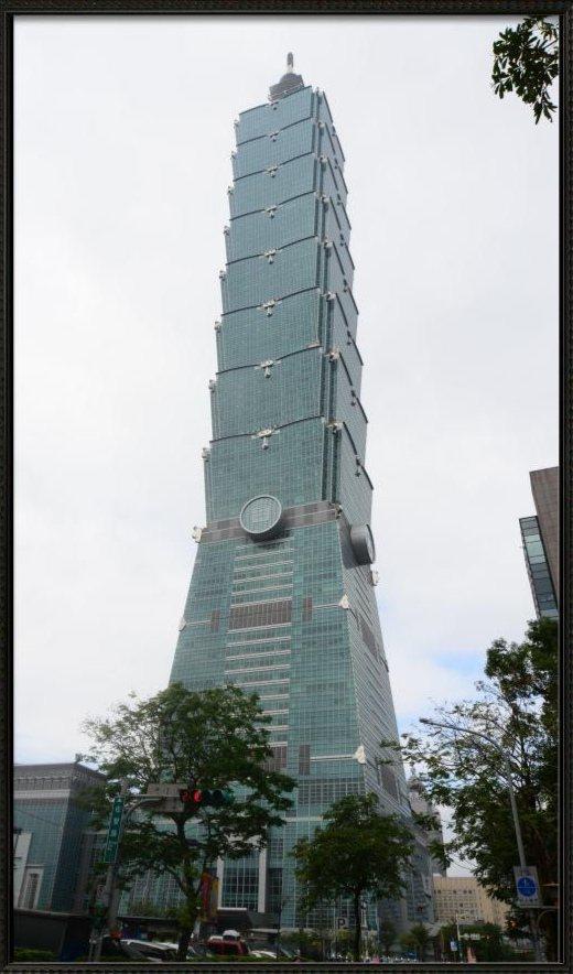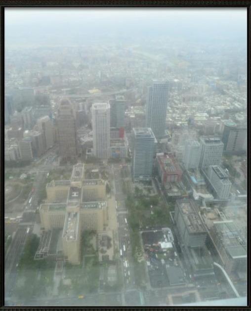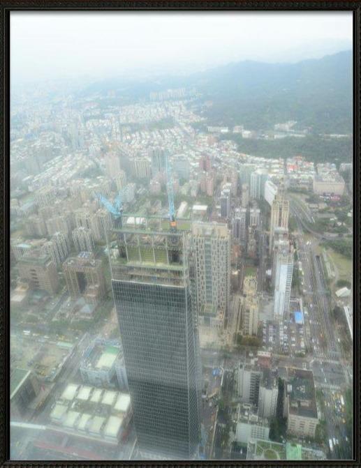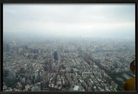 。。101大厦门票以前价格是500台币,现涨价是600元台币。假如没有上101大厦这样重要的景点,这次环岛旅行似乎有些缺憾。元月3日这天下午天气不好,下着蒙蒙细雨视线有所影响。但登上101大厦此时此刻心情马上变得愉快和兴奋,有一种“会当凌绝顶,一览众山小”这种韵味,伸手可以碰到天,视野豁然开朗。这里鸟瞰台北盆地,将近处错落建筑与远处青山绿水,尽收眼底一览无余。给人一种无限的遐想。