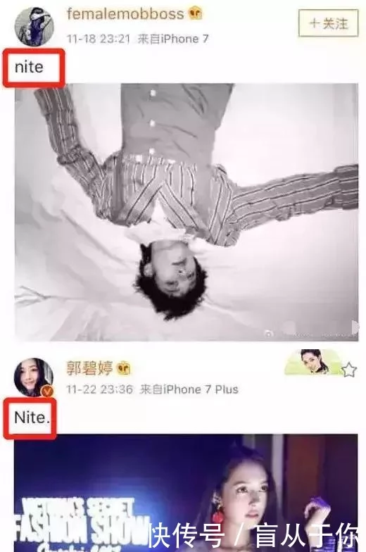 从水印可以看出曾轶可当时删了发,还把照片牵手的部分裁掉了,发了删,唯一没删的是两人同一时间发的晚安博,如果这都不算爱?